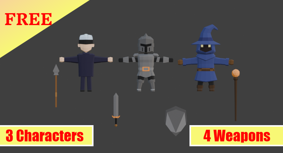 Comencé buscando assets que me gustaran, y el salvador de Kenney tenía el de Modular Dungeon, que decidí que fuera el escenario del juego. Sus personajes no me convencían, por itch.io acabé encontrando un pack de Fantasy Heroes Lowpoly de Standout 7, que pinta guay.